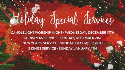 Join us for our Holiday Special Services! Invite your friends and family as we share the hope of Christ this Christmas!